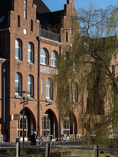 Feuerwache 5 und Zollamt am Holz- und Fabrikenhafen, erbaut 1904-1906. Heute Nutzung als Restaurant und Büros.